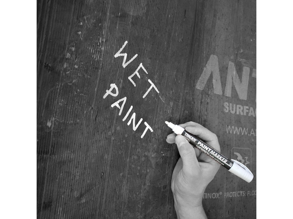 Široký permanentný značkovač s vysoko konstrastnou bielou farbou. Bez toluénu a xylénov. Robustná kovová konštrukcia s unikátnym atramentovým ventilom, ktorý zaručí, že váš značkovač len tak nevyschne.