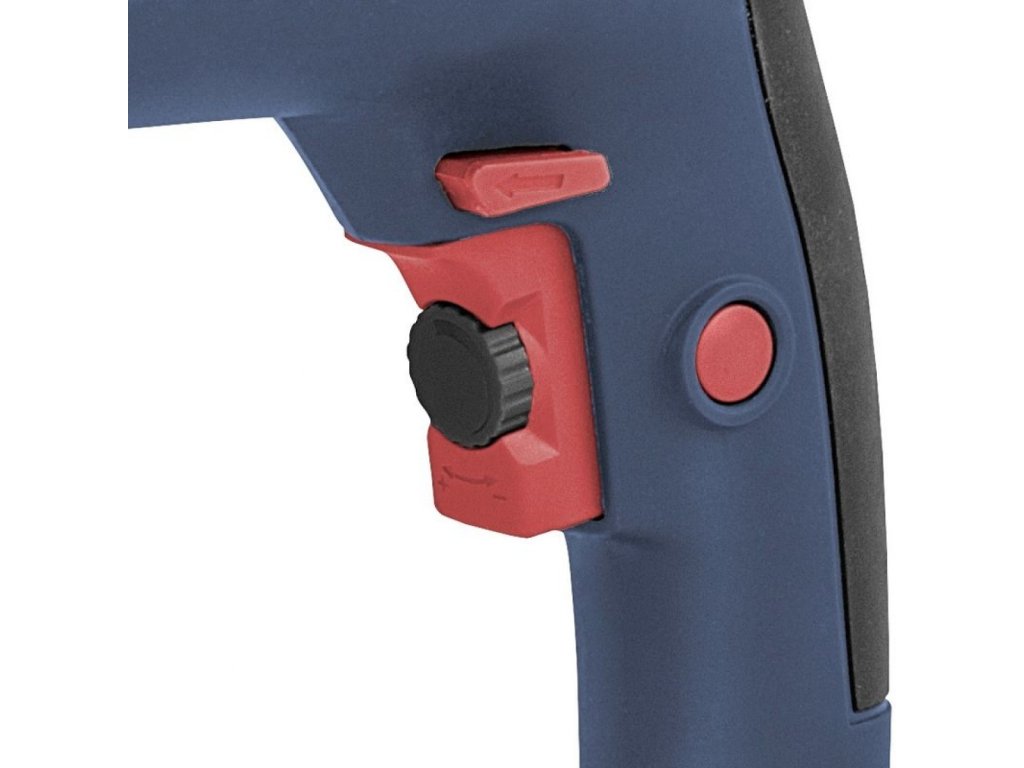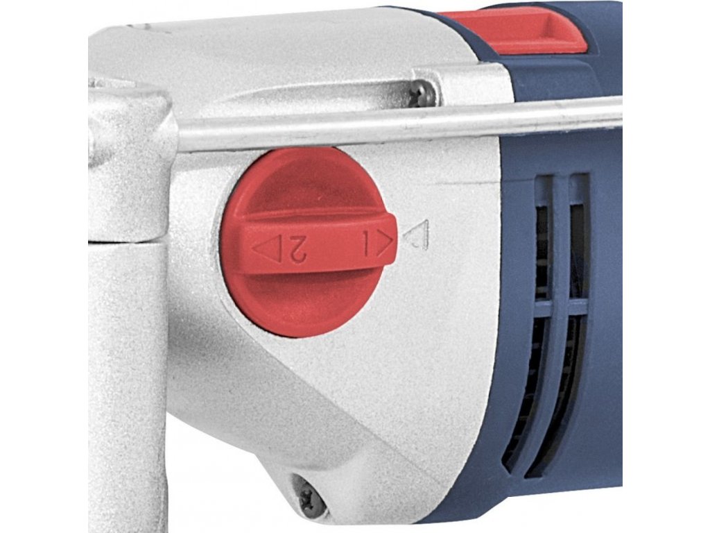Dvojstupňová prevodovka/otočný regulátor (→ predvoľba otáčok/príklepov podľa druhu vŕtaného materiálu; stupeň I: 0 - 1.000 ot./min., stupeň II: 0 - 2.800 ot./min.), pravý/ľavý chod (→ zaskrutkovanie/vyskrutkovanie skrutiek, skrutiek).