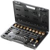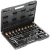 Súprava obsahuje drôtené mosadzné kefy Ø 18; 19; 21; 24; 26 mm, oceľové 300 mm dlhé drôtené kefky Ø 9 a 10 mm, kužeľové kefky, držiaky a adaptéry kief. Použitie: na odstránenie karbónových usadenín z motorových vstrekov a na čistenie sediel vstrekov. Dodávané v plastovom kufríku.