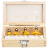Na dosiahnutie rovnakej hĺbky rezu a vedenia sú frézy vybavené ložiskom. Súprava obsahuje frézy s priemermi 3/4", 1", 1 1/4", 1 1/2", reznou dĺžkou 13/32", 17/32", 21/32", 3/4" a rádiusom 1/8", 1/4", 3/8" a 1/2". Priemer drieku 8 mm, čepeľ z tvrdokovu, ložisko 1/2" (R3ZZ) a 3/8". Dodáva sa v drevenej kazete s rozmermi 158 × 88 × 50 mm.