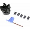 Súprava čelnej frézy s Ø 50 mm v plastovom kufríku obsahuje upínaciu hlavu, 5 ks nástrojov zo spekaných karbidov a kľúčik T15. Hroty možno po opotrebovaní otočiť o 180°.