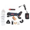Vybavenie: Li-Ion akumulátor 18 V/2,0 Ah; nabíjačka 3,0 A/h; 3 pílové listy (ponorný, segmentový, diamantový); delta brúsna doska 93 mm; sada brúsnych papierov K60 - K320, 18dielna; škrabka; plastový transportný kufrík.