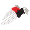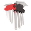 Zástrčné šesťhranné kľúče z chrómvanádiovej ocele. Veľkosti: 1,5; 2; 2,5; 3; 4; 5; 5,5; 6; 8 a 10 mm.