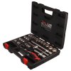Gola sada MULTILOCK 1/2″ 24 ks prináša komplexnú výbavu pre profesionálnu prácu aj domácich majstrov. Obsahuje 17 multiprofilových hlavíc pre päť typov skrutkových hláv, ergonomickú račňu s mäkčenou rukoväťou, rôzne adaptéry a predlžovacie nadstavce. Vyrobená z kvalitnej chróm-vanádiovej ocele (CrV), ponúka vysokú odolnosť a dlhú životnosť.