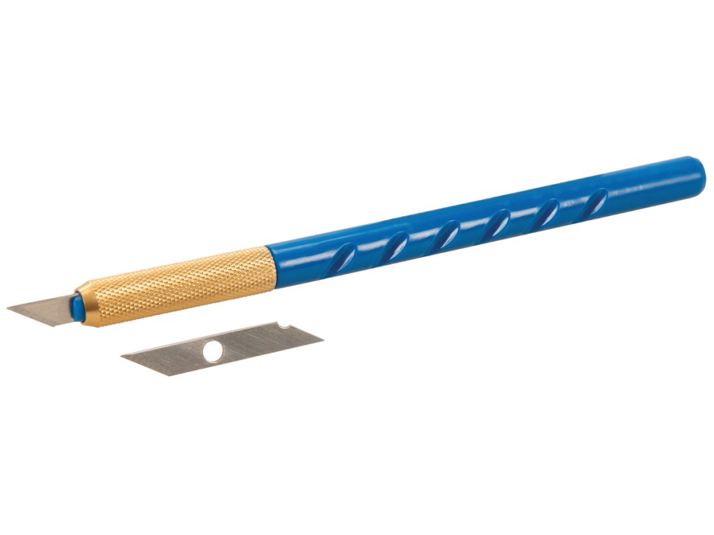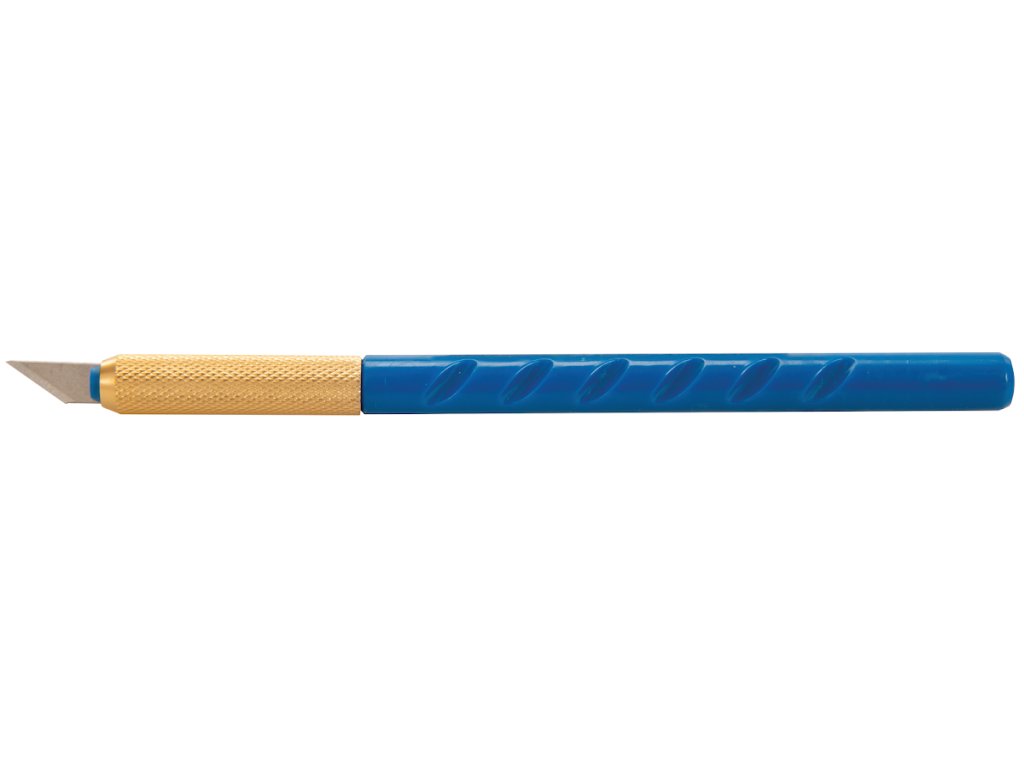 Silné plastové telo s vrúbkovanou mosadznou objímkou pre lepšie uchopenie. Ideálne na rezanie a vyrezávanie papiera. Obsahuje 24 ks čepieľok v plastovom puzdre.