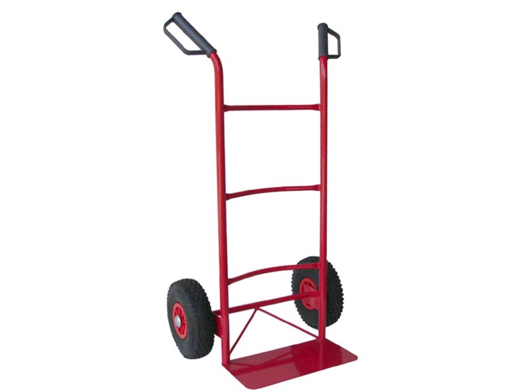 Dvojkolesový ručný vozík, ideálny na manipuláciu s tovarom v krabiciach alebo krabiciach.