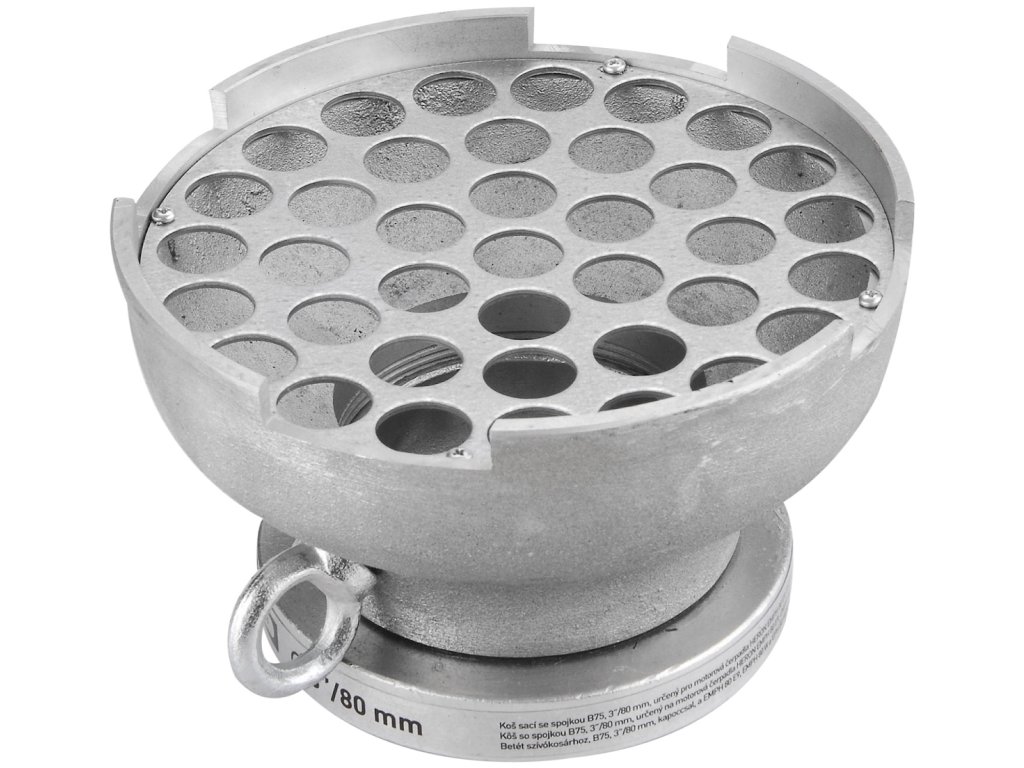 Sací kôš so spojkou B75 3"/80 mm, určené napr. pre 8895106, 8895105, 8895102, priechodnosť zrna 30 mm, minimálna výška sania 10 mm, materiál zliatina hliníka, oceľ. Nevyhnutný doplnok pre sacie hadice k čerpadlám.