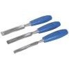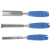 Sada obsahuje dláta o veľkostiach 13; 19 a 25 mm. Pohodlné polypropylénové rukoväte. Dodávané s chráničmi ostria.
