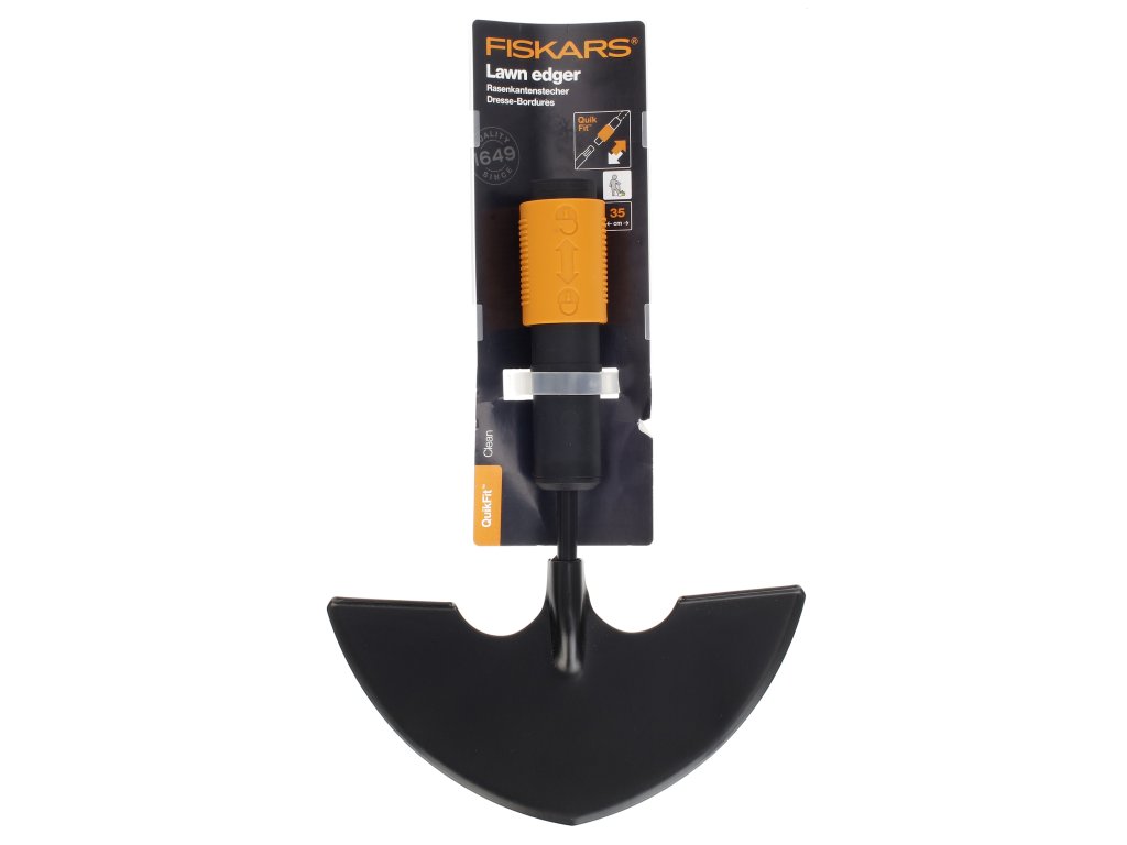 Nôž je navrhnutý tak, aby odrezal zarastený okraj trávnika. Do tvrdej pôdy sa zastaví stúpnutím na hornú časť. Čepeľ je vyrobená z bórovej ocele s plochým horným okrajom. Systém QuikFit vám umožňuje kombinovať rôzne záhradné náradie s jednou násadou. Odporúčané násady: M a L. Šírka: 195 mm, dĺžka: 260 mm, hmotnosť: 398 g. Pôvodné fiskars číslo: 136526.