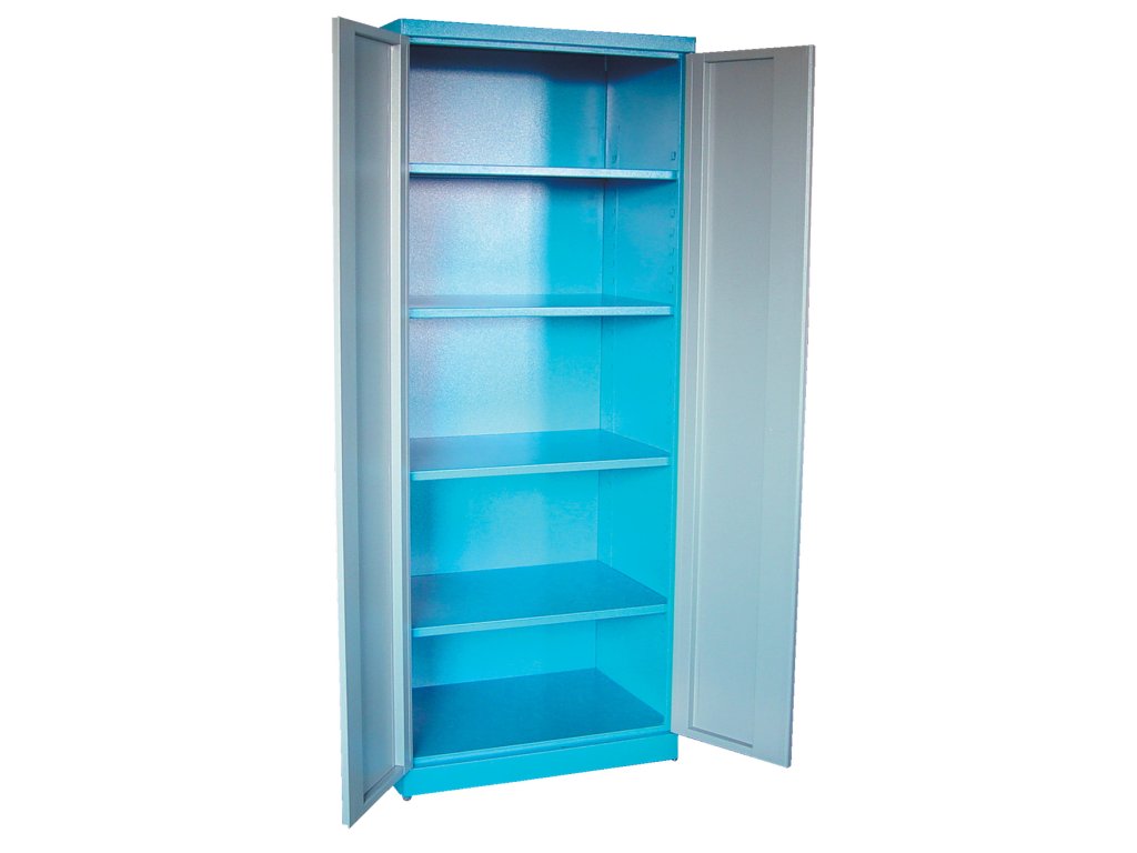Vybavenie: dvojdverová skriňa (→ uzamykanie cylindrickým/rázvorovým zámkom - dvojité uzamknutie, 2 kľúče); štyri vyberateľné police (→ voliteľné nastavenie výšky, nosnosť: 50 kg).
