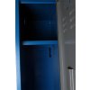Celokovová konštrukcia, dvojfarebné vyhotovenie, 2 zosilnené dvere, horná polica s tyčkou na vešiaky a 2x S-háčiky v každom diele skrine. Vetracie otvory hore a dole, menovky, sokel, cylindrická zámka s otočnou zástrčkou (2 kľúče), už zmontovaná. Rozmery (š × hl. × v) 600 × 500 × 1 800 mm.