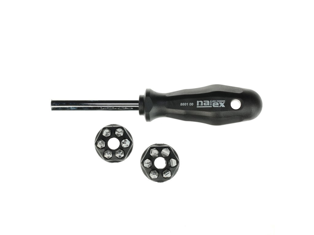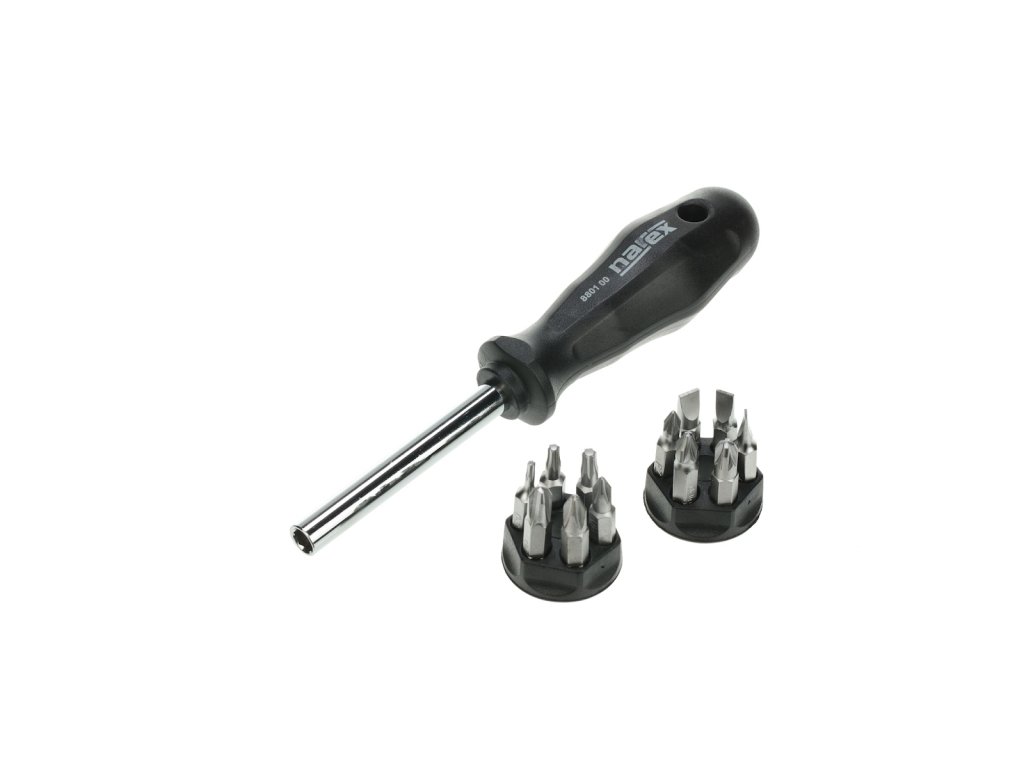 sada prídavných zariadení: plochá - 4,5,6; Philips PH1,2,3; Pozidriv PZ1,2,3; TX 8.15.20 Magnetický skrutkovač s prídavnými zariadeniami určenými na montáž a opravu v drsných podmienkach.