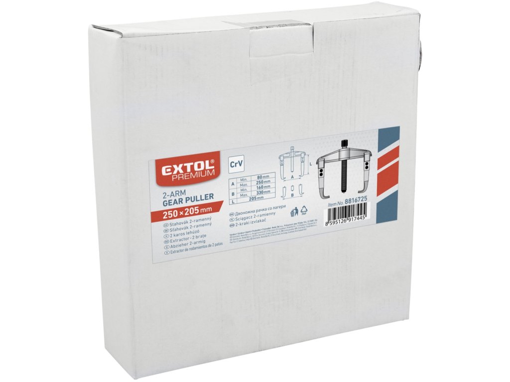 Rozpätie sťahováka 250 mm, hĺbka 205 mm.