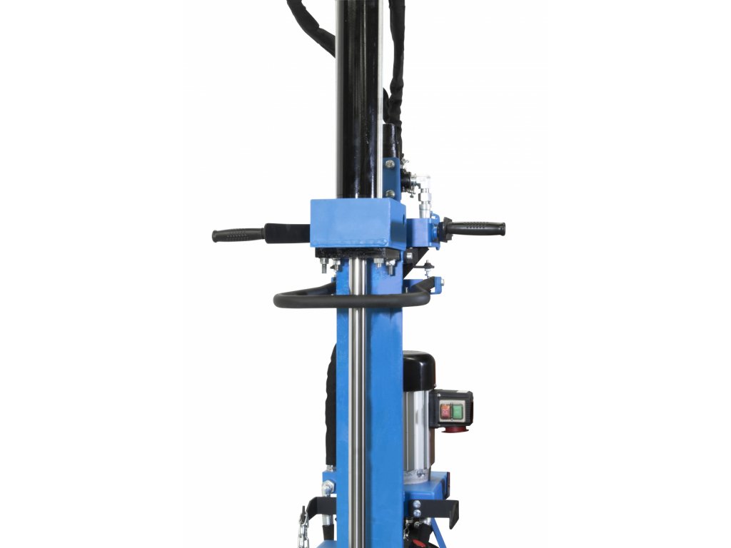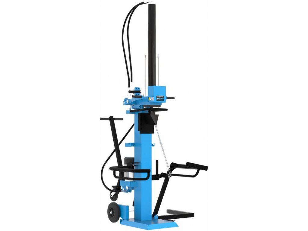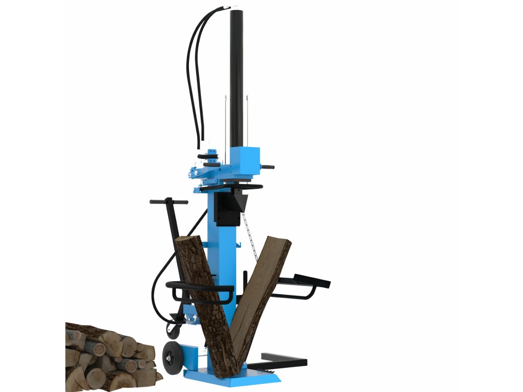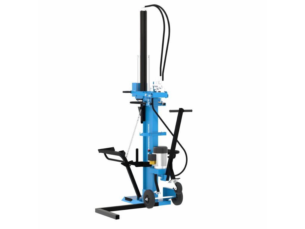 Konštrukcia: robustný oceľový rám, výkonné hydraulické čerpadlo, valec so štiepacím nožom (zdvih piestu: 960 mm), prídržné rameno, stabilná (nízka) základňa, zaisťovacia opora, ťažná rukoväť, transportné kolesá (3).