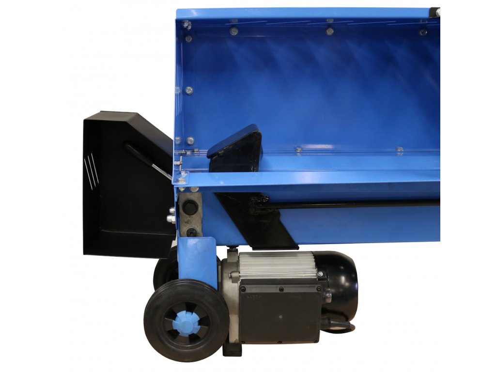 Konštrukcia: oceľový rám so štiepacím klinom, ochranné kryty, transportné kolesá.
