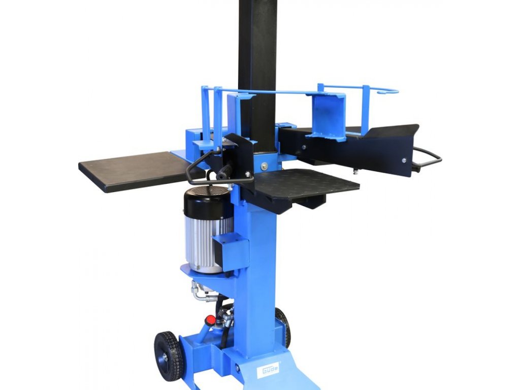 Konštrukcia: robustný oceľový rám, výkonné hydraulické čerpadlo, štiepací stĺp 90 × 90 cm, závesný pracovný stôl (d × š: 310 × 300 mm), odkladacie plochy (2), ťažná rukoväť, podstavec vr. transportných kolies.