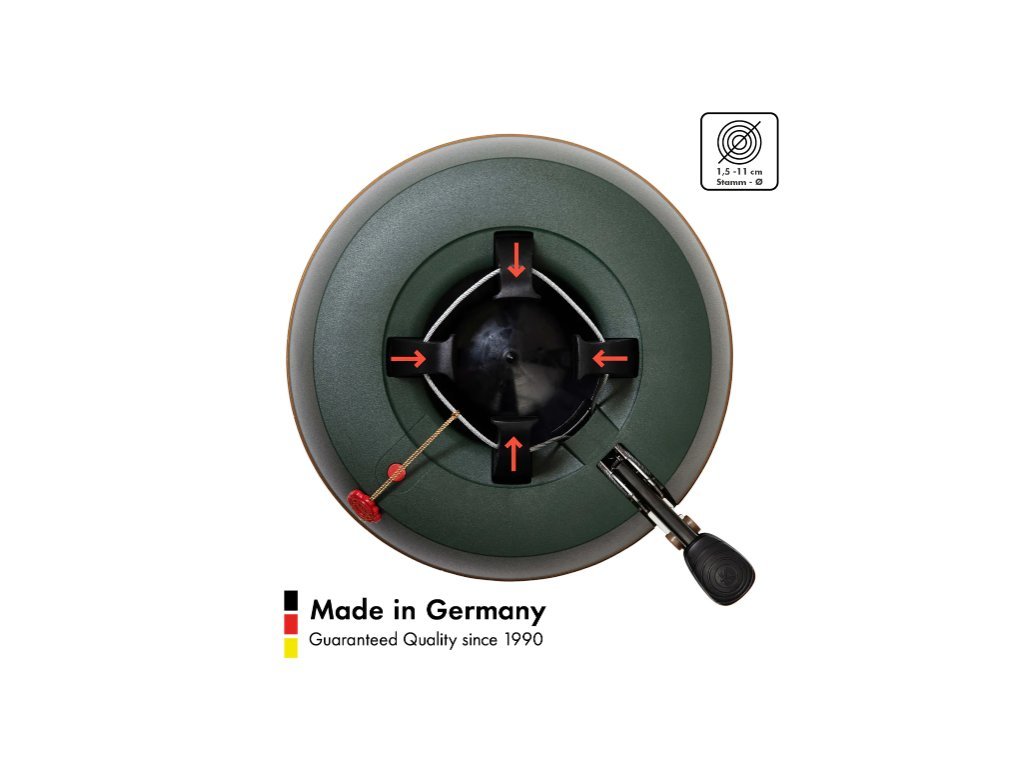 Súčasný rad Comfort Grip bol vylepšený o nový bezpečnostný pedál. Výrazne väčšia nášľapná plocha zaisťuje pri stlačení pedála čo najlepšiu priľnavosť chodidla alebo obuvi. Všetky stojany na vianočné stromčeky KRINNER sú vybavené osvedčenou originálnou technológiou s jedným lanom pre všetky druhy stromčekov a zaručujú rovnomerný tlak držiakov na kmeň stromu. Jednoducho umiestnite stromček do stojana, stlačte nášľapný pedál a hotovo! Nech je stromček silný, tenký alebo krivo rastúci, stojí bezpečne a vzpriamene. Patentovaný bezpečnostný pás s mechanizmom postupného otvárania navyše poskytuje dodatočnú bezpečnosť a zabraňuje nechcenému prevráteniu.