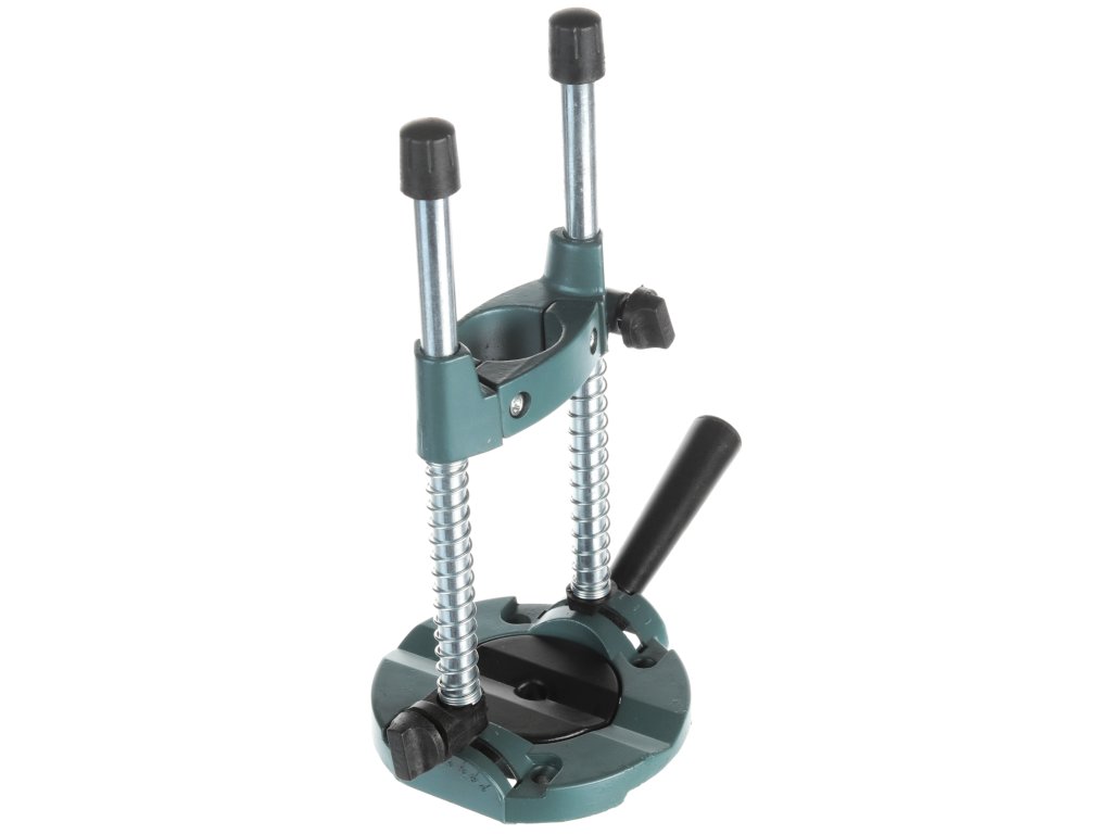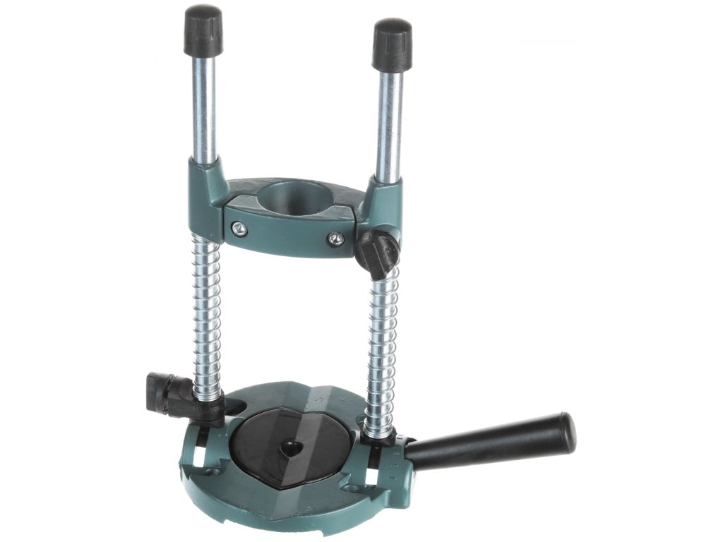 Stojan pre ručné elektrické vŕtačky s upínacím priemerom 43 mm. Výbavu tvoria dva dorazy, bočná rukoväť, prizmatické lôžko na vŕtanie rúrok a oblých predmetov.