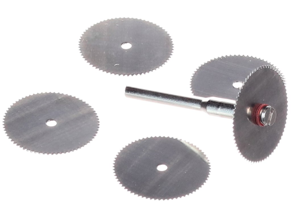 Pílové kotúčiky z rýchloreznej ocele na rezanie dreva, zliatin, plastov a sklených vlákien. Kompatibilný s väčšinou rotačných nástrojov vrátane Silverline, GMC a Dremel. Obsahuje 5 kotúčov priemer 22 mm a 3,17 mm tŕň. Maximálne 28 000 ot./min.