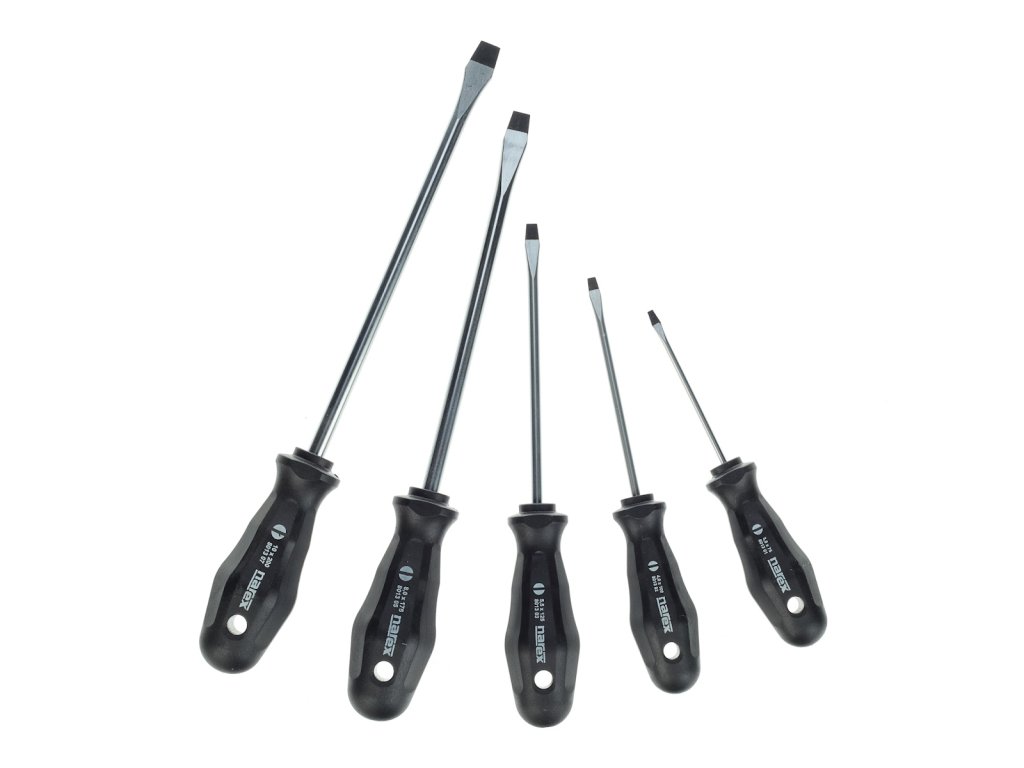 Súprava plochých skrutkovačov PROFI určená na montáž a opravu v drsných podmienkach.