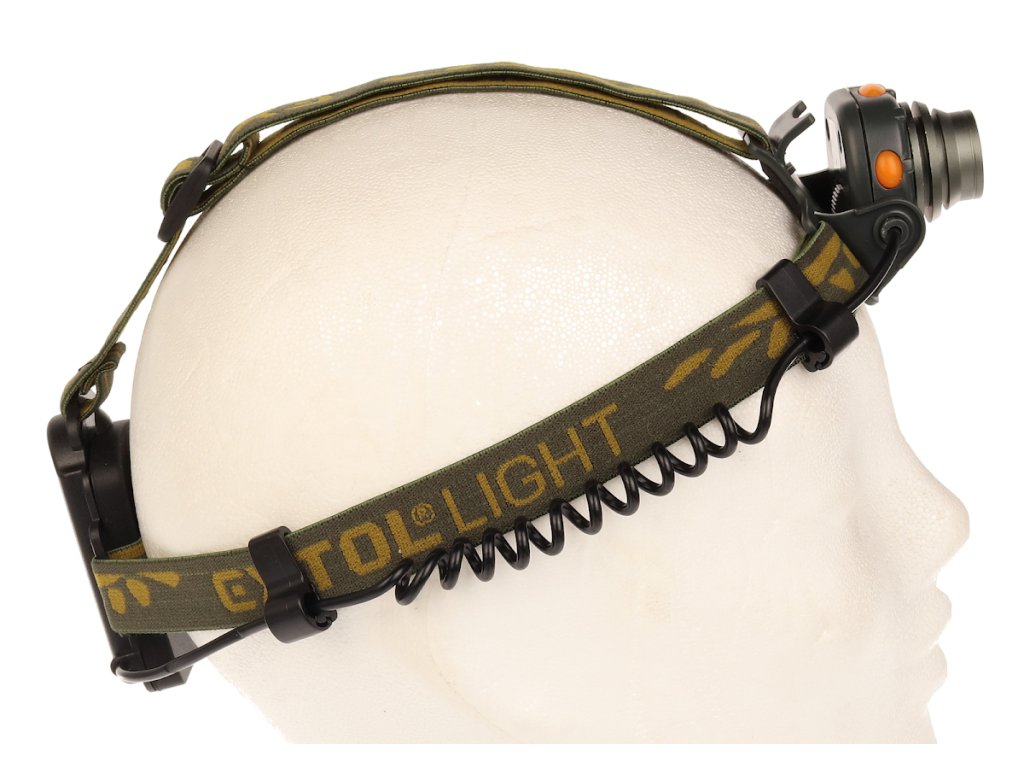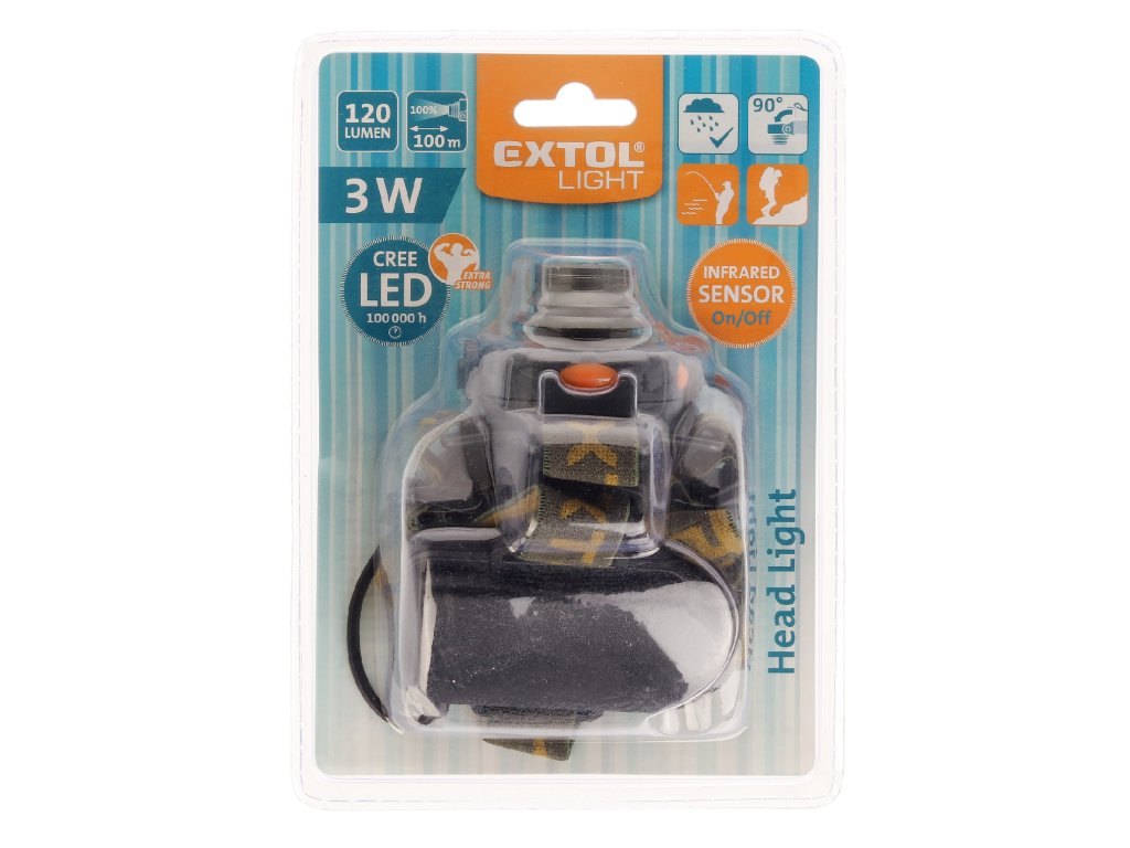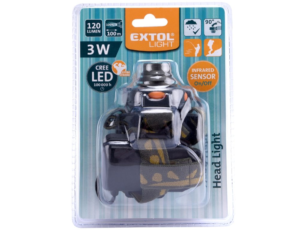 Čelové svietidlo s 3 W Cree XPE LED s dosahom svetla 100 m, 3 režimy prepínania svetla (100 %, 50 %, blikanie), dva spôsoby zapínania (klasický spínač alebo IR snímač na bezdotykové zapnutie, keď stačí iba kývnutie rukou pred čelovým svietidlom. Puzdro na batérie (3 × AAA 1,5 V) je oddelené od svietidla. veľmi ľahká kĺbová hlava čelového svietidla umožňuje nastavenie smeru svetla, trojbodový elastický nastaviteľný popruh. Hmotnosť bez batérií 84 g. Batérie nie sú súčasťou.