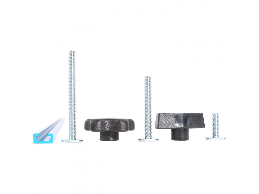 Súprava na vytvorenie ľubovoľných upínacích a montážnych prípravkov a nastaviteľných dorazov. Zahŕňa základné súčasti na výrobu prípravkov na stolové a opakované obrábanie: