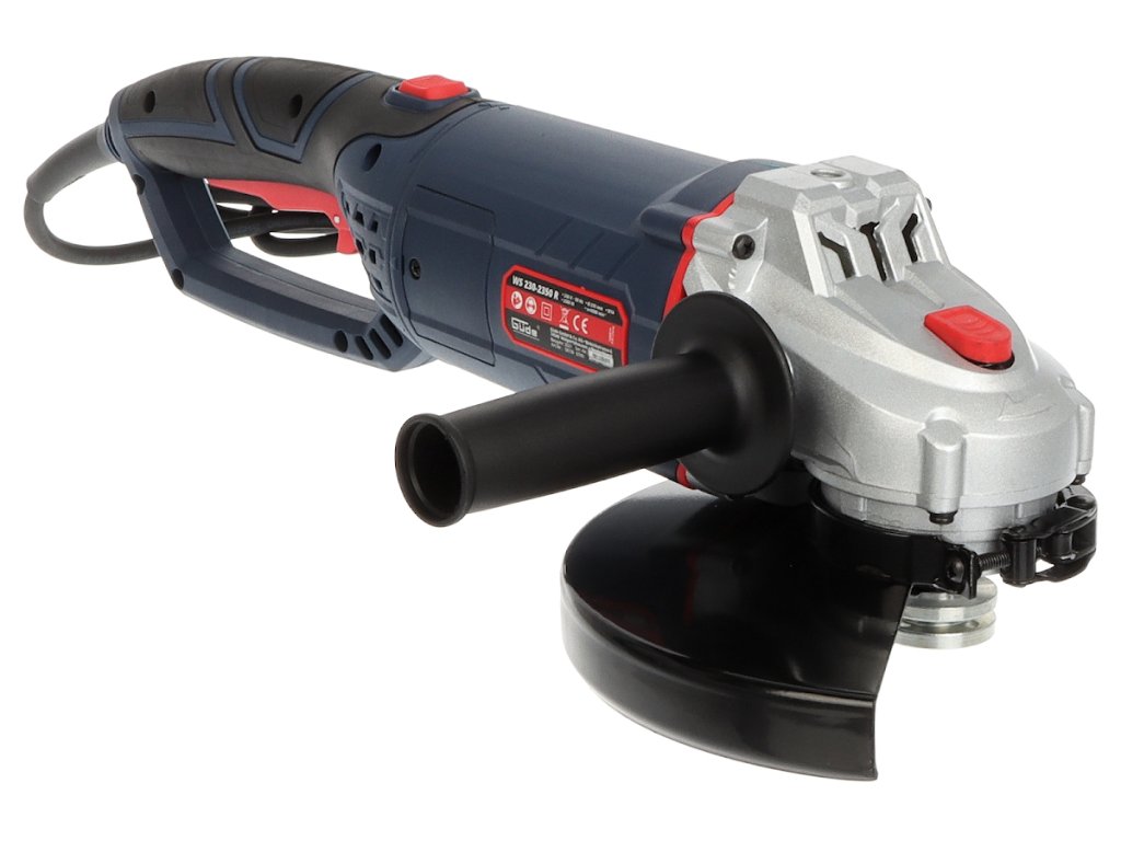 Výkonná uhlová brúska, určená na delenie, hrubovanie alebo kefovanie kovových/kamenných/keramických materiálov v podmienkach domácich i remeselníckych dielní (→ max. priemer kotúča: 230 mm).