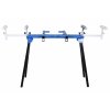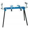 Stabilný fixačný stojan na bezpečné upevnenie stroja (→ max. rozmery upnutia: 450 x 850 mm), polohovateľné podávacie valce (→ max. dĺžkové/výškové vyloženie: 340/145 mm).