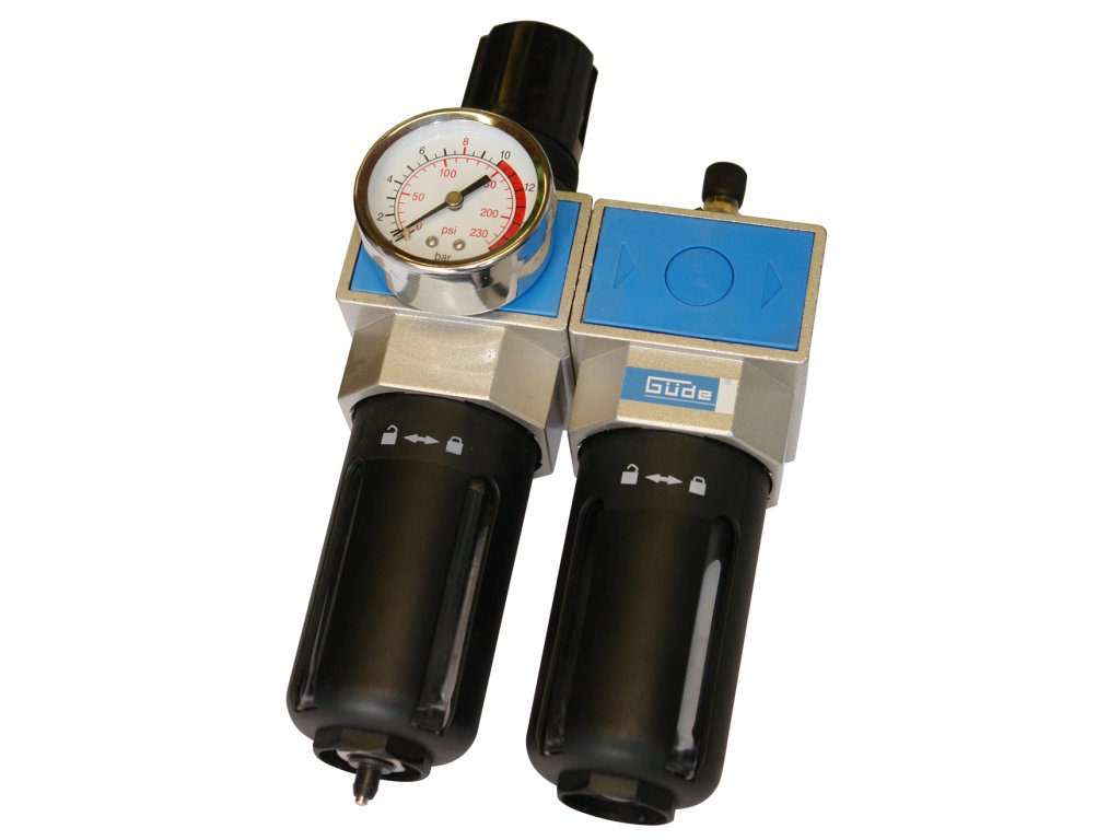 Kompletná úpravná jednotka stlačeného vzduchu (→ redukčný ventil s filtrom/hmlový primazávač), určená na montáž na kompresor alebo umiestnenie do tlakového vedenia.