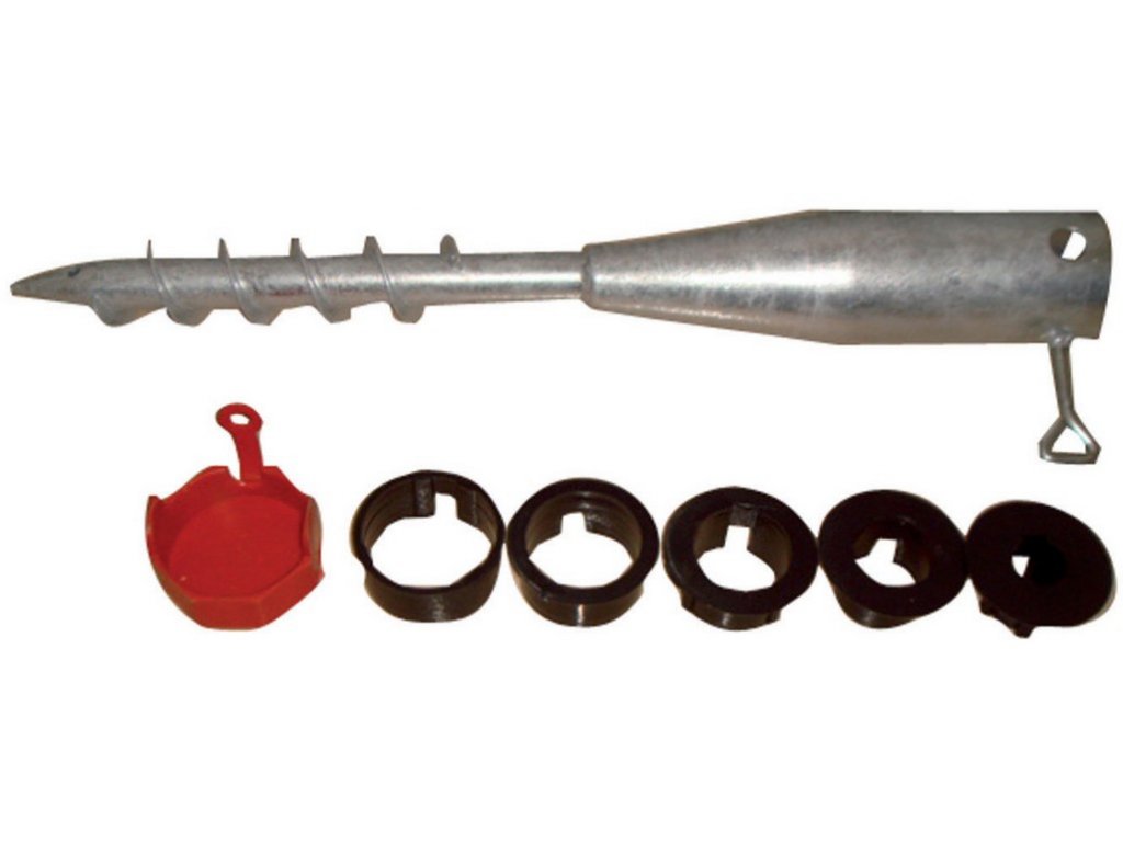 Uzemnená skrutka s univerzálnym použitím v záhrade, konštrukcii alebo na ukotvenie plota.