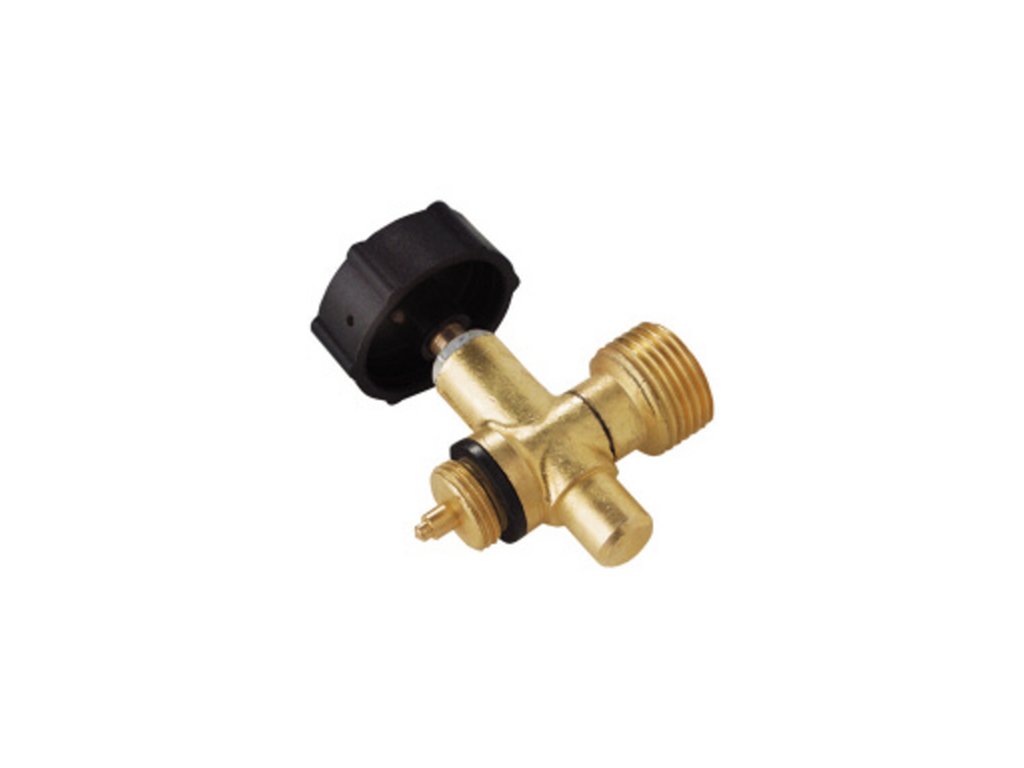 Přímý jednocestný ventil pro připojení ke 2 kg tlakové lahvi s výstupním závitem W 21,8 L pro připojení regulátorů tlaku a nízkotlakých spotřebičů.