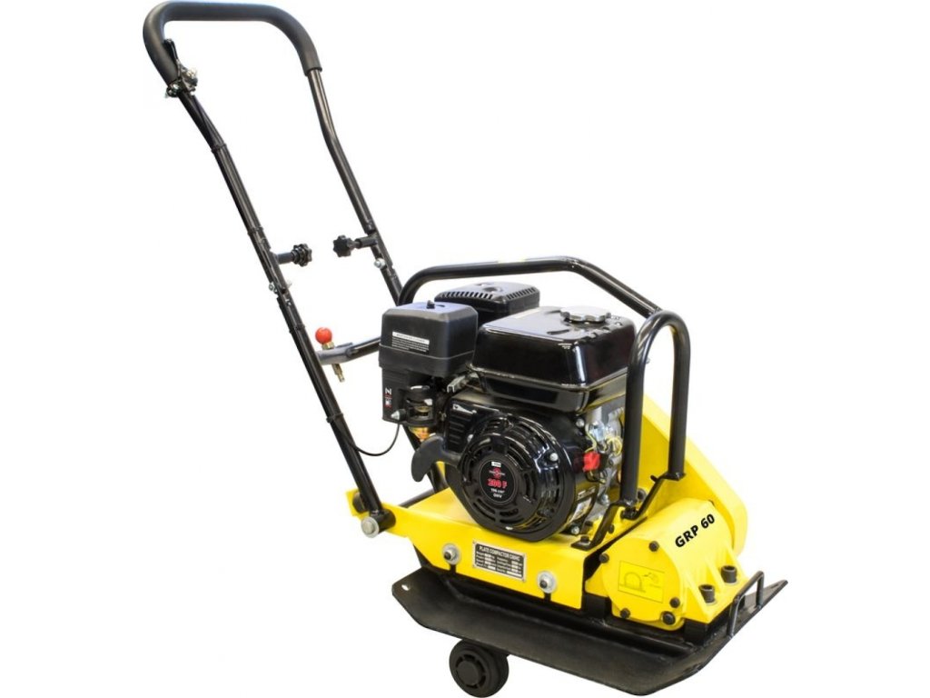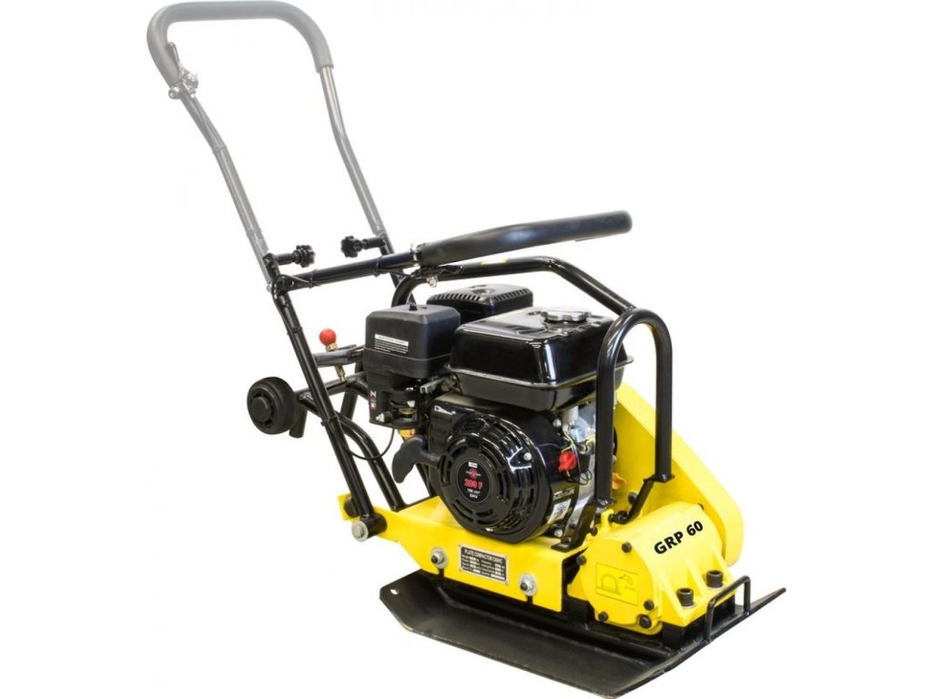 Kompaktná vibračná doska, určená na terénne úpravy alebo stavebné práce okolo domu, v záhrade a pod.