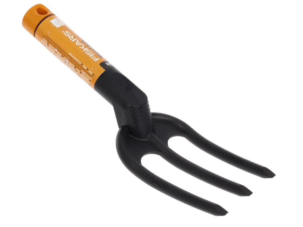Vidlica je vhodná na jemnú výsadbu a burinu, presádzanie a hnojenie v záhrade. Je ergonomicky tvarovaný, má zaoblené hrany, ktoré nepoškodzujú pôdu alebo korene. Je veľmi trvanlivý a ľahko sa čistí, čepele je možné zaostriť. Odoláva teplotám v rozmedzí od -40 do +150 °C a je 100% recyklovateľný. Má závesný otvor pre jednoduché skladovanie. Šírka: 78 mm, dĺžka: 295 mm, hmotnosť: 89 g. Pôvodné číslo Fiskars: 137030. Pôvodné číslo FIS 1000729.
