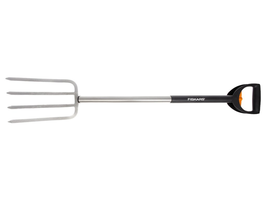 Vidly sú veľmi ľahké, vhodné aj pre ľudí s menšou silou. Čepeľ vidlí je vyrobená z vysoko kvalitnej tvrdenej ocele, rukoväť je navrhnutá pre pohodlné uchopenie. Násada je vyrobená z oceľového potrubia a rukoväť je vyrobená z polyamidu. Dĺžku rukoväte je možné ľahko zmeniť z 1050 mm na 1250 mm. Dĺžka: 1050 - 1250 mm. Hmotnosť: 1700 g. Pôvodné číslo Fiskars: 133320.