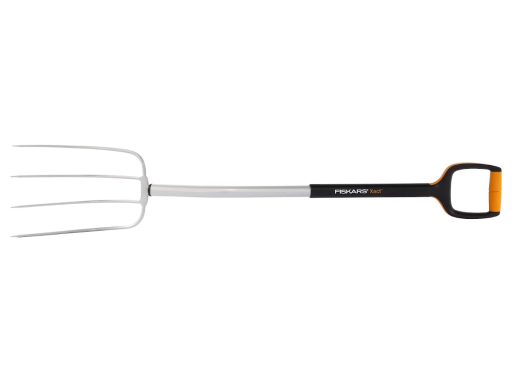 Vidly kompostu Xact sú vhodné na manipuláciu so senom, trávou, burinou, kompostom a iným záhradným odpadom. Špičky sú tenké a ostré a majú väčšie zakrivenie. Vďaka tomu sú pichnuté a materiál sa v nich dobre drží. Zakrivenie násady uľahčuje prácu. Tento nový rad nástrojov Xact je ergonomicky navrhnutý a zaručuje najlepšiu pracovnú polohu. Uhol násady proti čepeli o 26° znižuje únavu chrbta a ramien. Zakrivená časť pomáha zlepšiť stabilitu. Nástroj je veľmi ľahký a napriek tomu mimoriadne trvanlivý. 25-ročná záruka. Dĺžka: 1200 mm. Šírka: 184 mm. Hmotnosť: 1700 g. Pôvodné fiskars číslo: 133482.