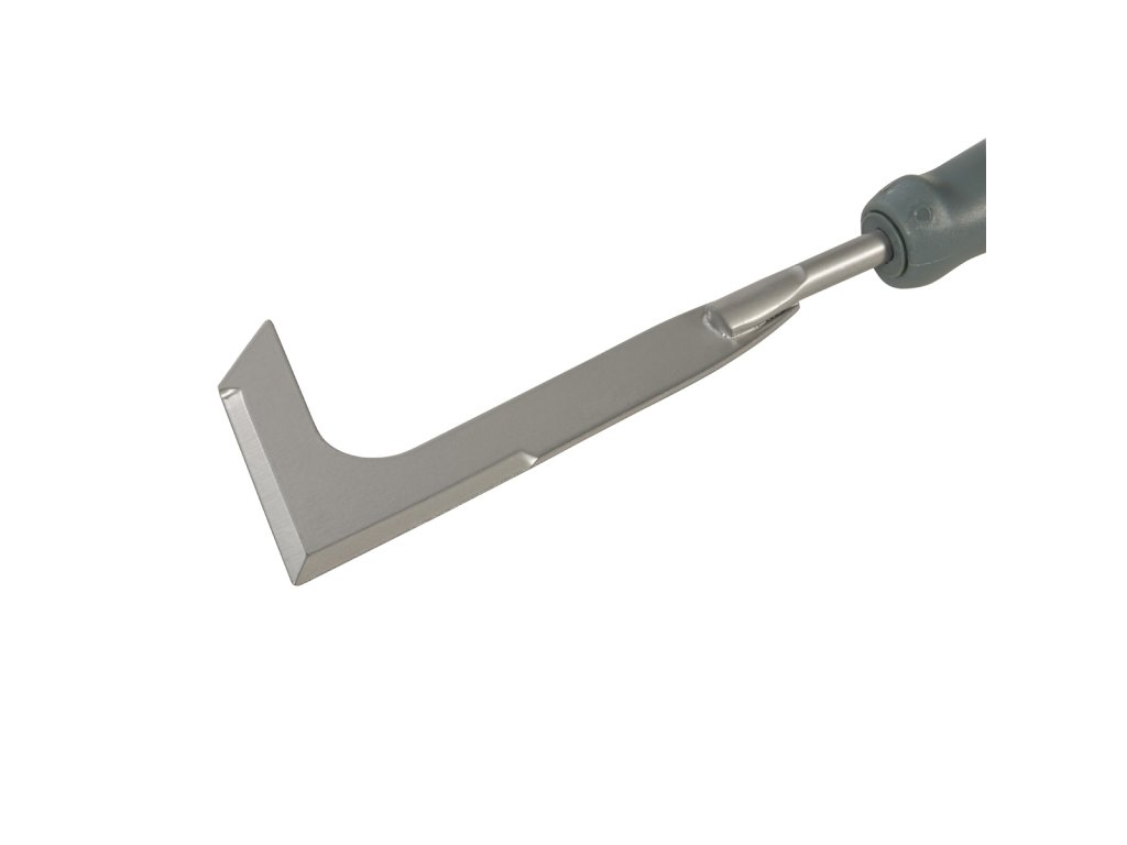 Práškovo lakovaná hlava z ocele. Plastová rukoväť so závesným otvorom. Na odstraňovanie trávy, machu a buriny z medzier medzi dlažbou. Čepeľ: 110 x 55mm.
