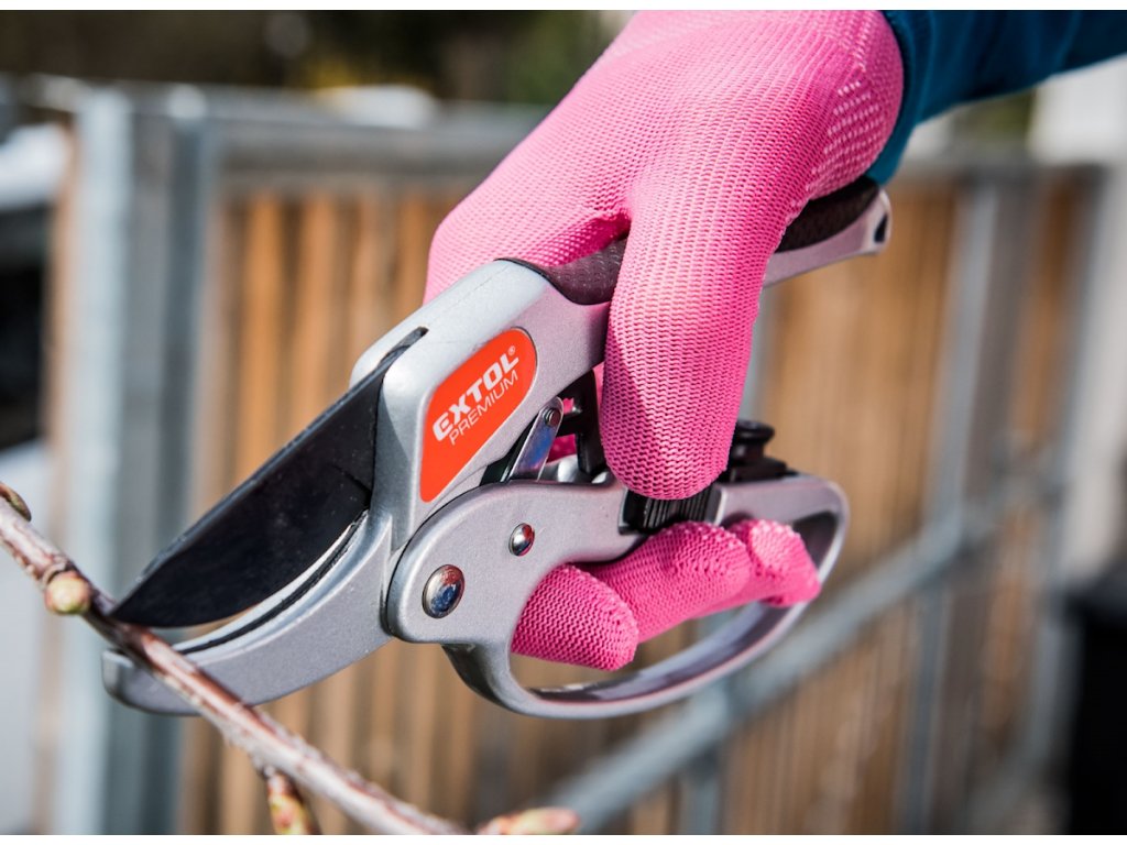 Nožnice sú vybavené rohatkovým prevodom na krokové strihanie s vynaložením menšej sily pri práci, čo umožňuje prestrihnutie konárov až do priemeru 24 mm. Navyše sú v rukoväti vybavené roztieračom oleja na ošetrenie čepelí po práci (olej znižuje trenie a chráni proti korózii). Aretačná páčka je pri tomto modeli samozrejmosťou. Čepele sú vyrobené z kvalitnej ocele SK5. Celková dĺžka nožníc 205 mm.