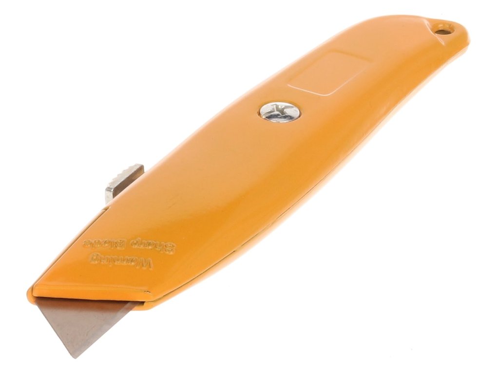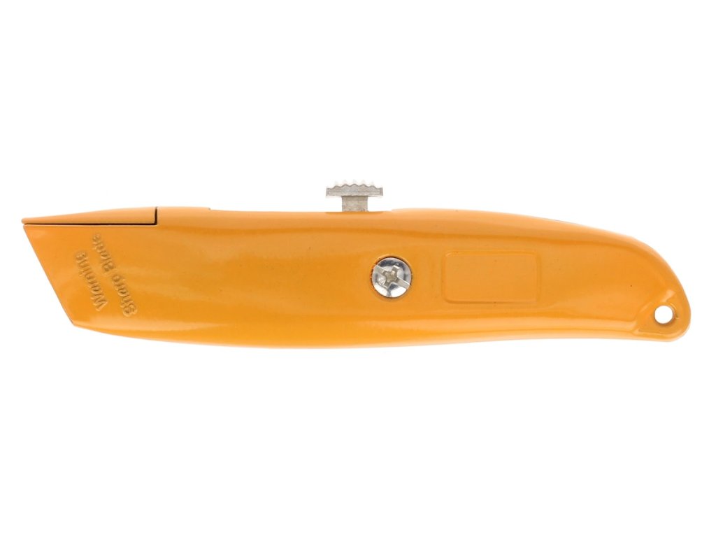 Masívne hliníkové telo, odolná čepeľ 0,5 mm. Integrovaný úložný priestor čepele a otvor na zavesenie. Farba strieborná. Dĺžka 150 mm.