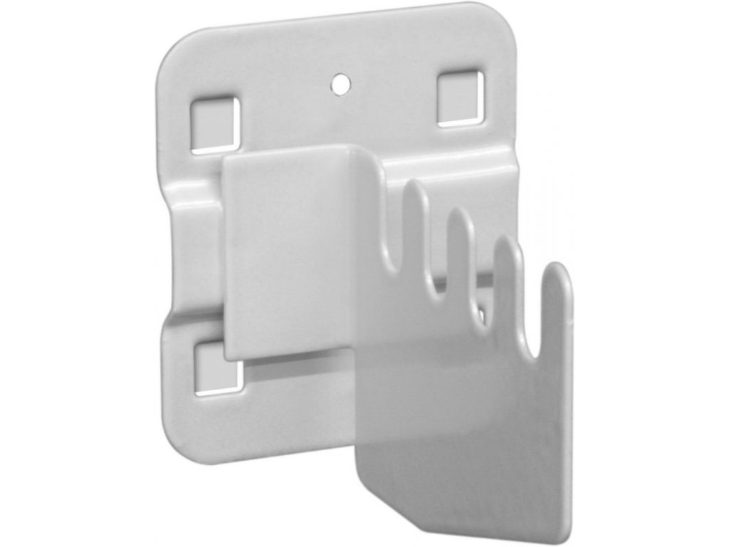 Držiak na píly (→ upevnenie až 4 píl), kompatibilný s dielenskými závesnými systémami, ktoré využívajú štvorcové dierovanie 10 mm² pri vertikálnej/horizontálnej vzdialenosti stredov otvorov 38 mm.